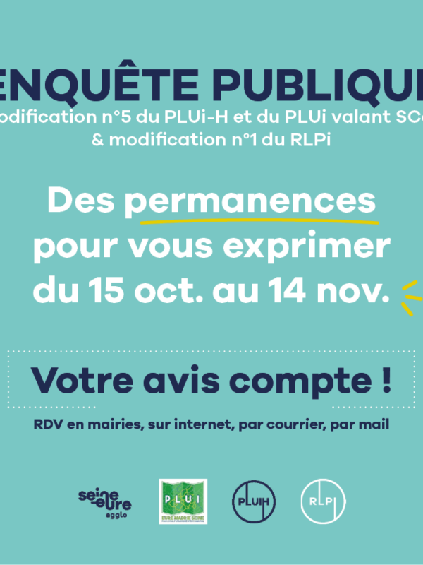 L’enquête publique de la modification n°5 du PLUi-H et la modification n°1 du RLPi aura lieu du 15 octobre au 14 novembre 2025.